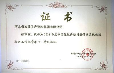 根據(jù)系統(tǒng)顯示的2018年度填報記錄,中國農(nóng)資流通協(xié)會共評選出10家信息報送優(yōu)秀單位。河北省農(nóng)資集團(tuán)公司榮獲報送優(yōu)秀單位、報送特別貢獻(xiàn)單位。