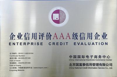 本網(wǎng)訊 近日,經(jīng)中國國際電子商務(wù)中心、北京國富泰信用管理有限公司對集團公司綜合素質(zhì)能力、經(jīng)營能力、管理能力等進行嚴格審查、綜合評定,確認集團公司信用等級為AAA。