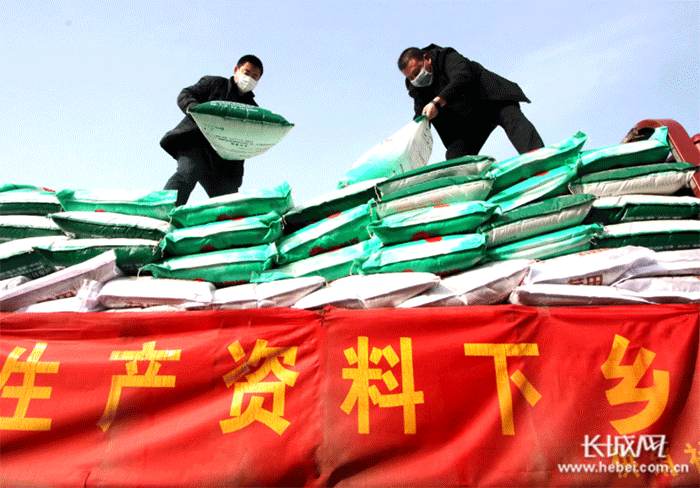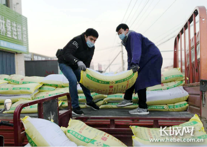 邯鄲市永年區(qū)供銷社農(nóng)業(yè)生產(chǎn)資料配送中心工作人員正將化肥裝車準(zhǔn)備送往農(nóng)戶。
