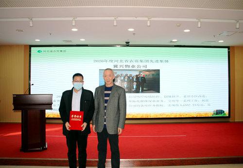 任海(右)為冀興物業(yè)公司頒發(fā)“2020年度先進(jìn)集體”榮譽證書