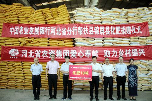本網(wǎng)訊 8月3日,集團(tuán)公司與中國農(nóng)業(yè)發(fā)展銀行河北省分行在晉州倉庫舉行聯(lián)合捐贈(zèng)儀式,由集團(tuán)公司向該行定點(diǎn)幫扶縣貴州省黔東南苗族侗族自治州錦屏縣捐贈(zèng)尿素商品10噸。