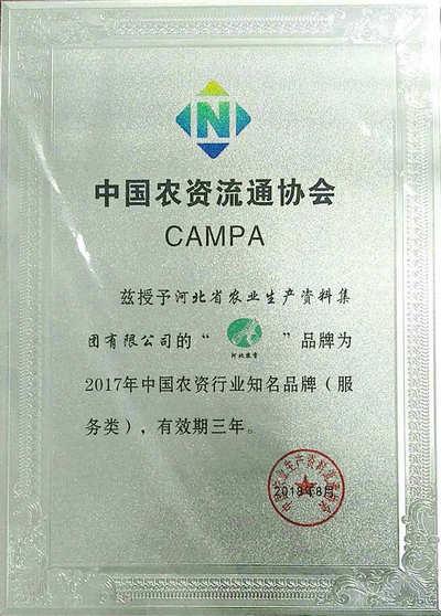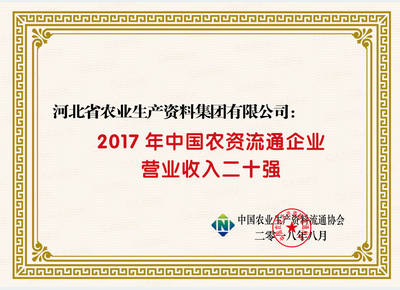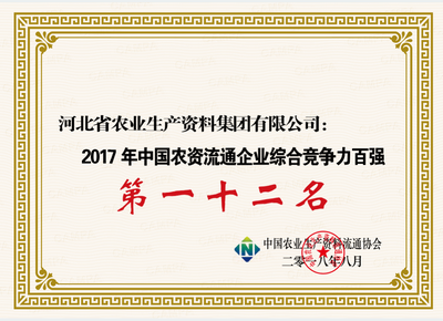 集團(tuán)公司榮獲中國(guó)農(nóng)資流通企業(yè)綜合競(jìng)爭(zhēng)力百?gòu)?qiáng)、中國(guó)農(nóng)資行業(yè)知名品牌