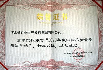 集團(tuán)公司榮獲“2020年度中國(guó)農(nóng)資最佳渠道品牌”稱號(hào)