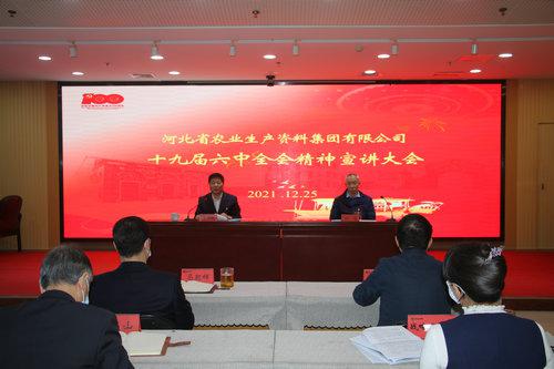 本網(wǎng)訊 2021年12月26日,河北省農(nóng)資集團公司在河北農(nóng)資大廈召開黨員干部大會,深入學(xué)習(xí)宣傳貫徹黨的十九屆六中全會精神,由省供銷社監(jiān)事會主任、集團公司黨委書記、董事長李平現(xiàn)對全會精神進行宣講,集團公司黨委副書記任海主持會議。集團公司班子成員、各單位負責人及全體黨員現(xiàn)場參會,集團公司其他人員通過釘釘視頻參會。